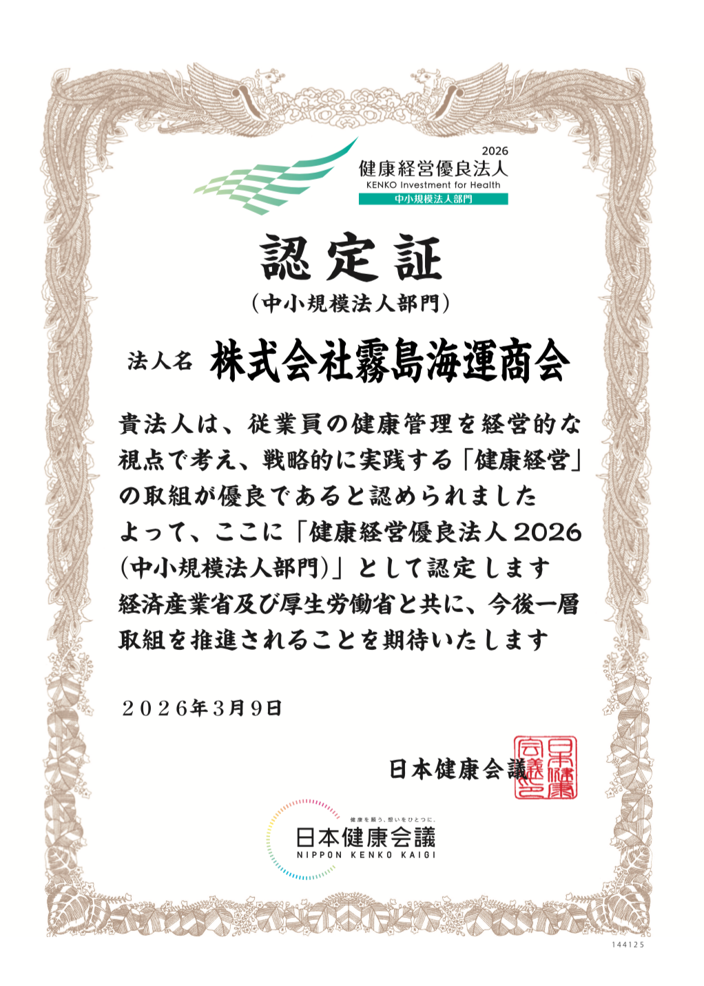 当社は、このたび日本健康会議が認定する「健康経営優良法人2026(中小規模法人部門)」に認定されました。