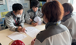 会社において毎月1回の安全定例会(船主・船長含む)を開催、当社グループ内で起こった事故・トラブル事例の概要、原因と対策等の説明、月間安全重点目標の習熟度を確認し、いかに抑制効果につなげられるか、模索しながらグループ一丸となって安全確保に取り組んでいます。